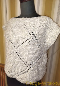 拡大図へのリンク要るか?ってくらいに簡単な造りです^^; 四角を2枚編んで、首出す穴と腕出す穴確保して脇と肩とじる、ってだけ。